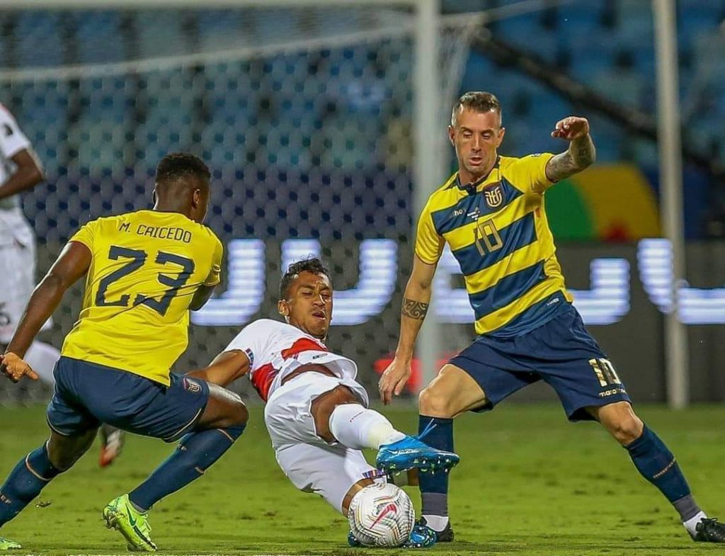 El combinado nacional igualó a dos tantos frente a su similar de Perú, este miércoles, en partido por la cuarta fecha de la llave B. Los tantos por Ecuador los marcaron Renato Tapia (minuto 23, en propia puerta) y Ayrton Preciado (45+3). En el segundo tiempo descontó el ítalo-peruano Gianluca Lapadula y André Carrillo puso el 2-2 definitivo.