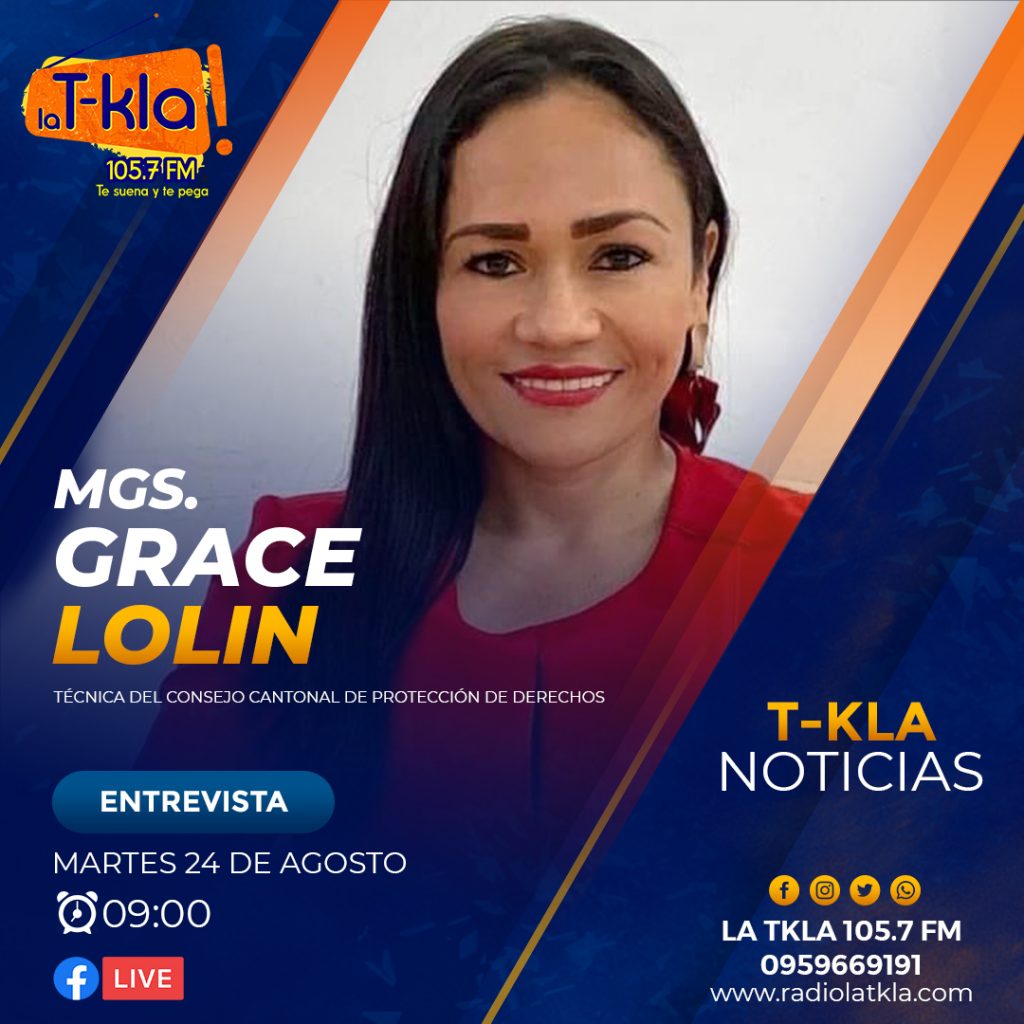 ⏰ 09:00 nos acompañará la MGS. Grace Lolin – Técnica del Consejo Cantonal de Protección de Derechos de La Libertad.