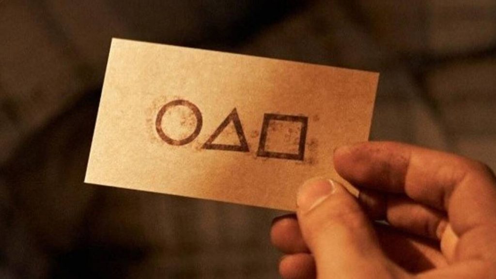 La primera reacción de la gente al ver esos símbolos es de preocupación. En la serie surcoreana, la más vista de la historia de Netflix, un individuo vestido de traje abofetea al protagonista cada vez que pierde una apuesta contra él. Luego le deja la famosa tarjeta para participar en el concurso.
