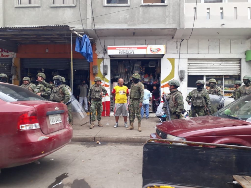 Ante los rumores del supuesto intento de saqueo en los mercados, los ciudadanos hicieron el llamado a los militares a cargo de Marlo Orbe, comandante del BI-MOT 14 Marañón