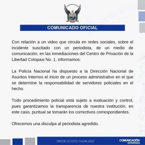 En horas de la tarde del martes 14 de junio de 2022 las imágenes de un grupo de policías y militares agrediendo a un reportero del medio de comunicación Cordillera de Latacunga, que se encontraba realizando la cobertura de la protesta social en los exteriores de la Cárcel de Cotopaxi se viralizó.