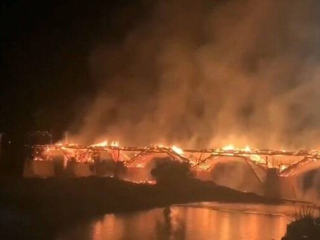Un incendio destruyó el puente Wan’an, que fue construido hace 900 años durante la dinastía Song (960-1127) y es considerado el puente de madera más antiguo de China, según medios locales.