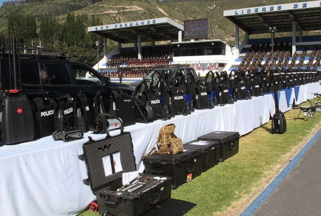 Además, durante una ceremonia realizada este 22 de enero de 2024, el Gobierno entregó 1.752 radios de comunicación portátiles valoradas en USD 5.2 millones, cuatro robots para el trabajo antiexplosivos, cuatro robots para reconocimiento táctico en las operaciones, cuatro cañones disruptores, cuatro inhibidores de frecuencia y cuatro máquinas rayos X.