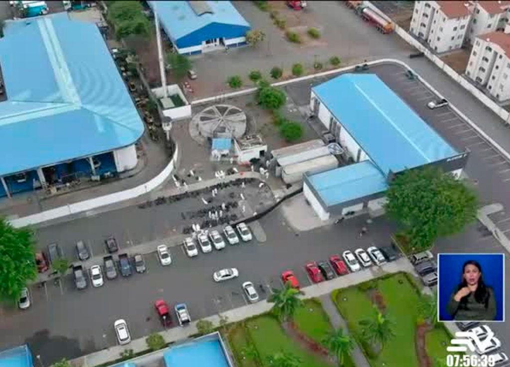 Un equipo de Ecuavisa registró cómo los cuerpos, dentro de bolsas plásticas, fueron ubicados uno al lado de otro en el parqueadero.