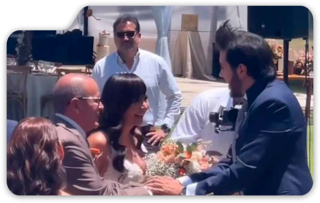 Nataly, actriz y guionista, compartió momentos del evento en sus redes sociales, destacando su entrada al altar junto a su padre en un elegante vestido blanco, mientras Jorge, con un traje azul, recibía el apoyo de sus compañeros de EnchufeTV.
