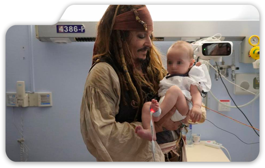 Uno de los más destacados fue Johnny Depp, quien sorprendió a todos al aparecer vestido como su icónico personaje, Jack Sparrow, para visitar a los niños en las plantas oncológicas del Hospital público de Donostia.