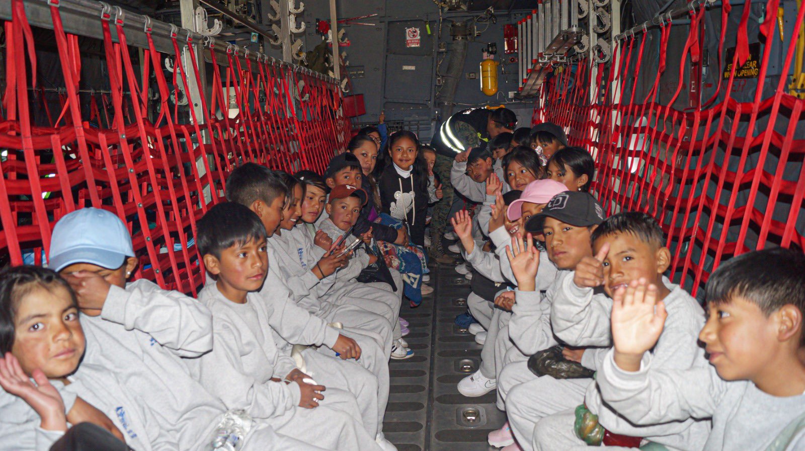 Para cada uno de estos pequeños —oriundos de parroquias rurales de Latacunga y de Pujilí— este día marcó el momento en que subieron a un avión por primera vez. Con su ticket de abordaje entre las manos, caminaron hacia el Hércules C-130, un gigante metálico que los esperaba con la rampa abierta.