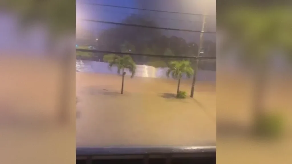 Imágenes compartidas en redes sociales muestran que hubo inundaciones en la Terminal Terrestre como también en el parque infantil, ubicado entre las calles Colón y Mejía.