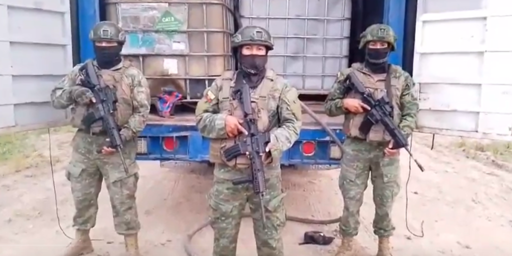 Miembros del Ejército Ecuatoriano, durante un patrullaje de reconocimiento como parte de las operaciones de seguridad hidrocarburífera, detectaron una perforación clandestina en el tramo Esmeraldas–Santo Domingo, en el sector Cupa,