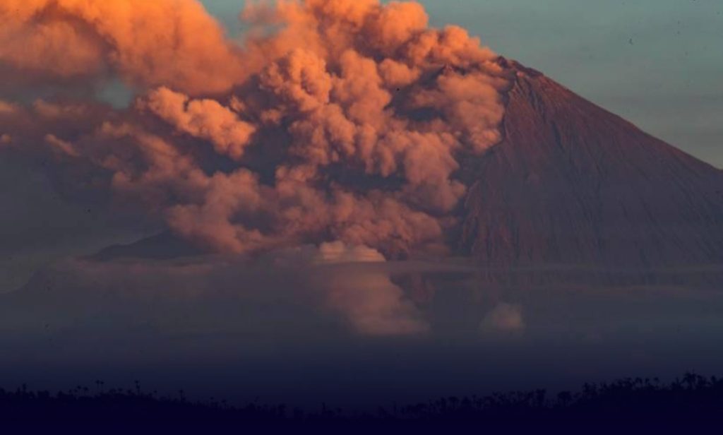 El volcán Sangay, de los más activos de Ecuador y en erupción desde 2019, lanzó este martes una columna de ceniza de