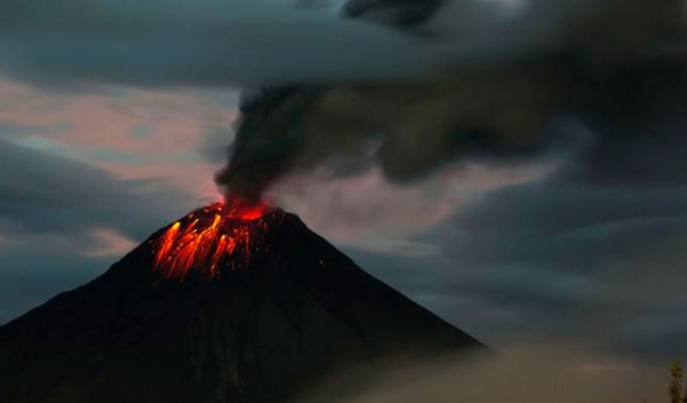 El volcán Sangay expulsa ceniza que cae sobre zonas andinas