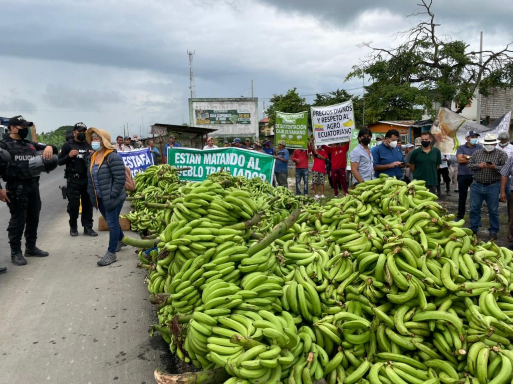 Los productores de banano realizaron una marcha pacífica este miércoles 16 de marzo y colocaron la fruta en la carretera a la