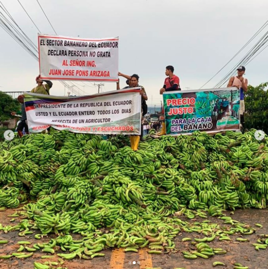 Productores bananeros cerraron el lunes 14 de marzo la vía Puerto Inca – Guayaquil para exigir al Gobierno que active