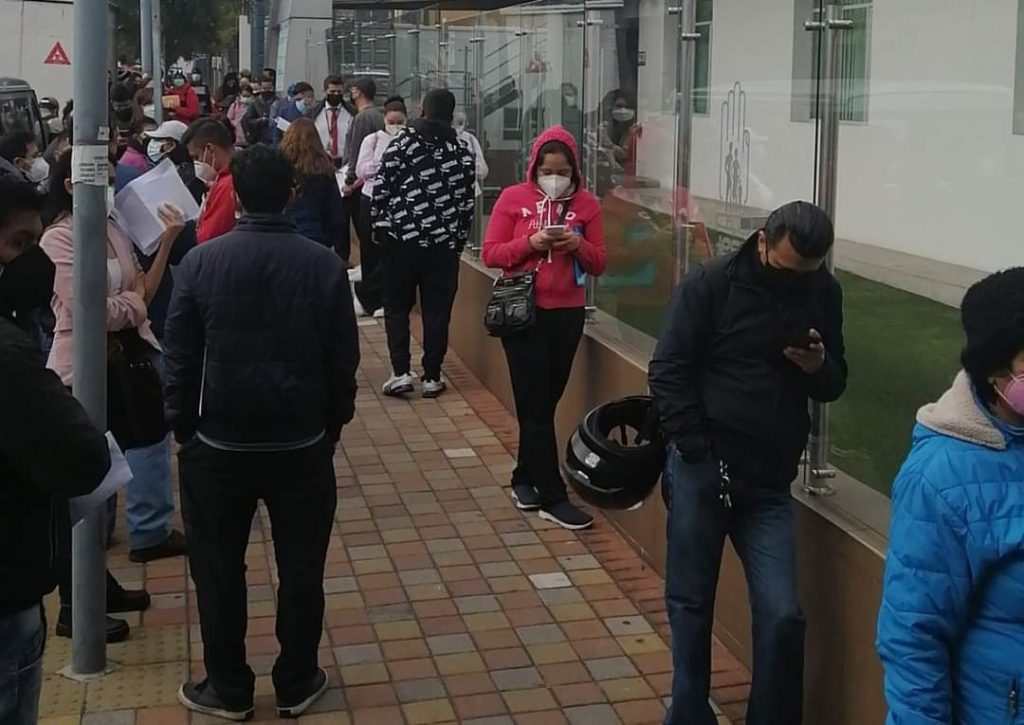 Pacientes con diagnóstico positivo de COVID-19, hacen filas en dependencias del IESS para validar los certificados de descanso médico. Jhon Páez tiene el virus y