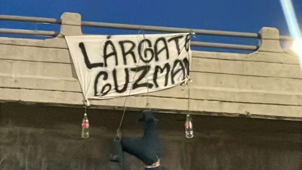 Un monigote colgado en un puente del sur de Guayaquil y un cartel exigiendo la salida de Jorge Guzmán marcaron una nueva