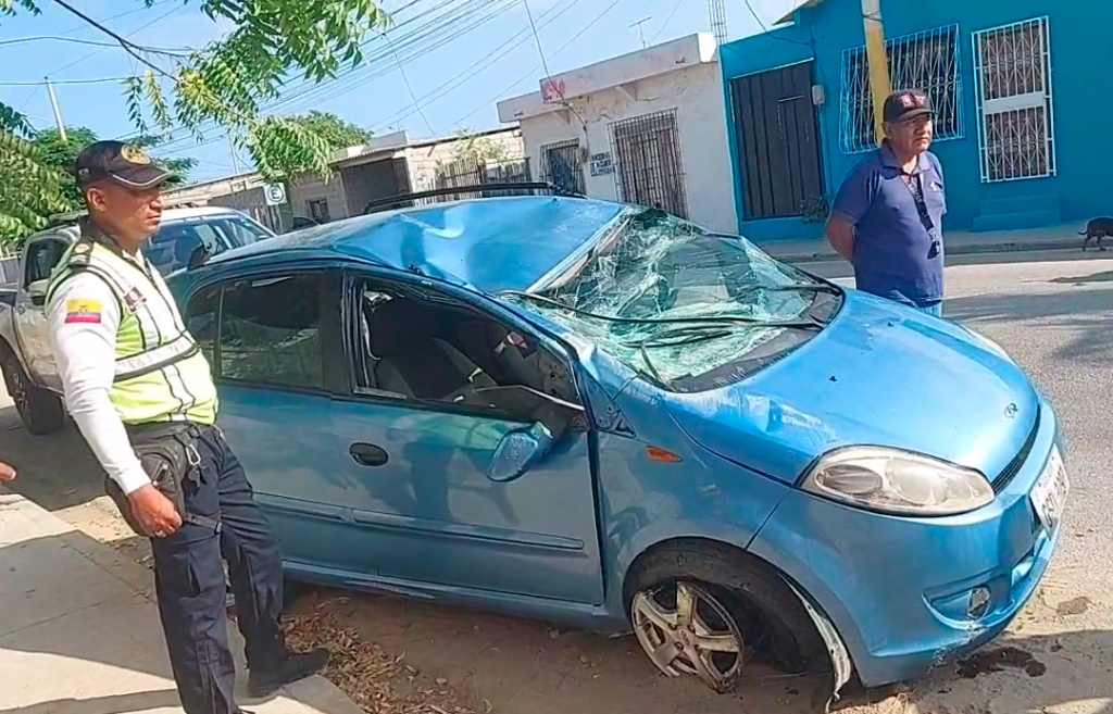 Según informes locales, un vehículo se habría salido de control y volcado en el Barrio La Propicia del Cantón La