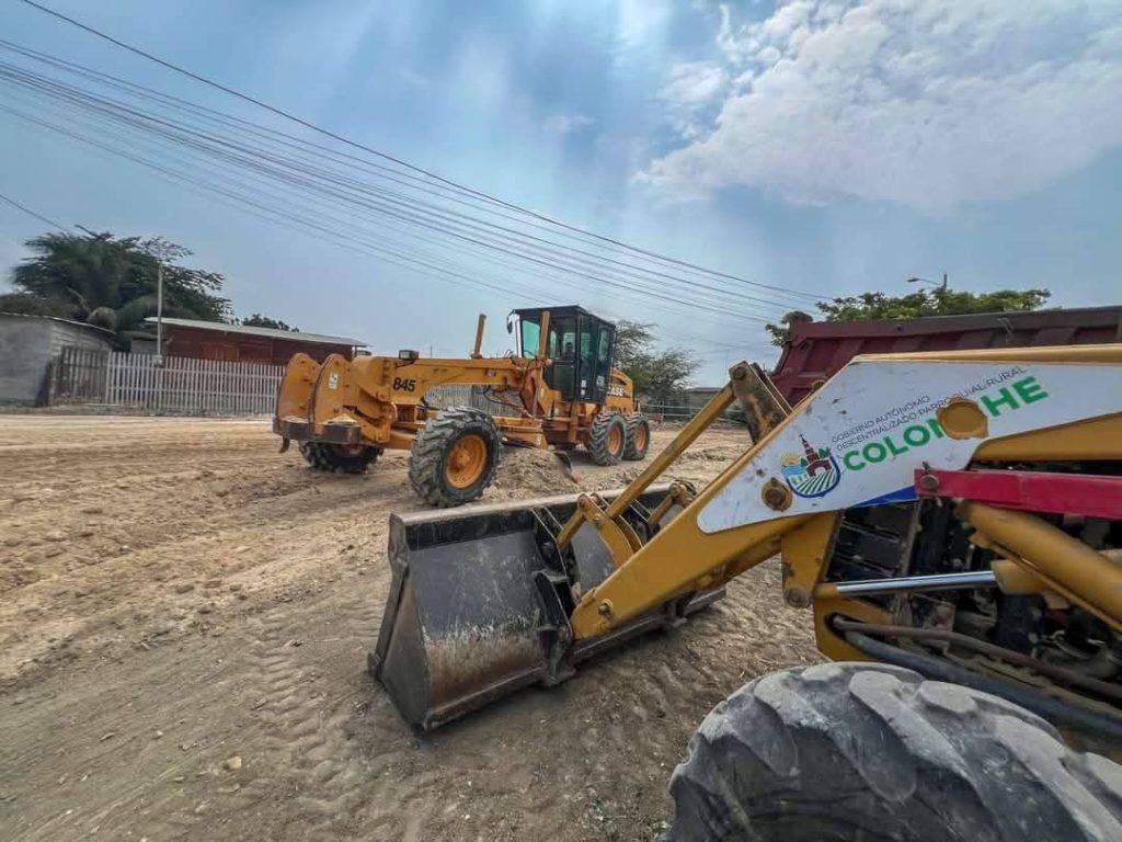 Equipo caminero y personal técnico ejecuta trabajos de reconformación y lastrado de vías en el barrio Cruce de Palmar. Trabajo