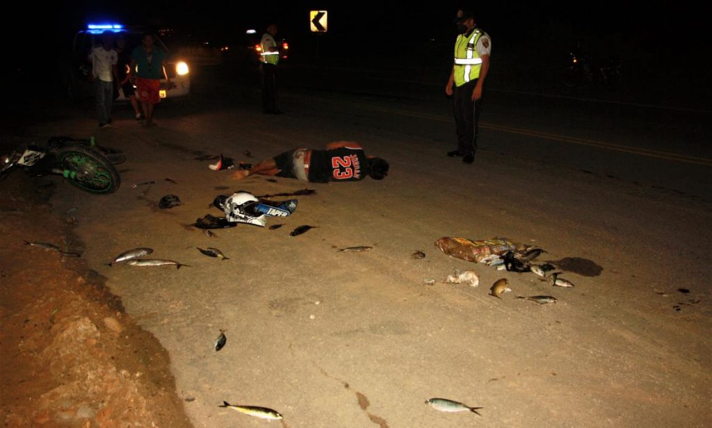 El pequeño vehículo terminó destrozado, al igual que el casco que llevaba su conductor Tendido sobre el asfalto quedó un