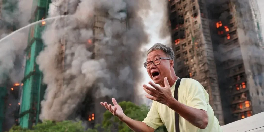 Un enorme incendio que ha arrasado varios rascacielos residenciales en el distrito Tai Po de Hong Kong ha dejado al